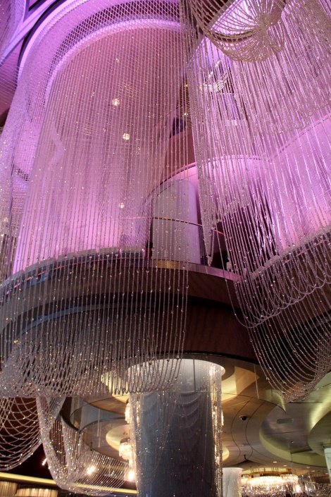The fancy Cosmopolitan Hotel with pool parties and crystals decorations.