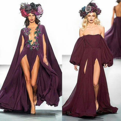 Michael Costello presented for NYFW a Spring – Summer ’17 Collection of sexy red carpet dresses. Inspired by a botanical garden at midnight with floral jacquards, laces and embroideries in colors red, deep purple and lush.