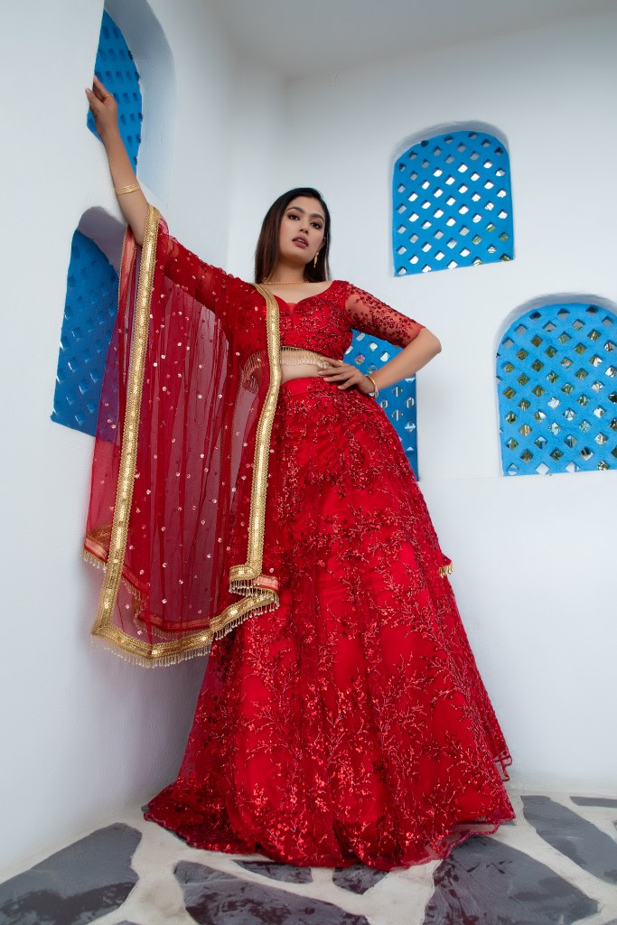 Kriti’s couture pieces are adorned with beads, dabka, sequins, crystals, and hand-stitched motifs, turning each garment into wearable artistry that tells a story. Her clientele spans bridal clients, fashion influencers, diaspora brides, and couture collectors worldwide.