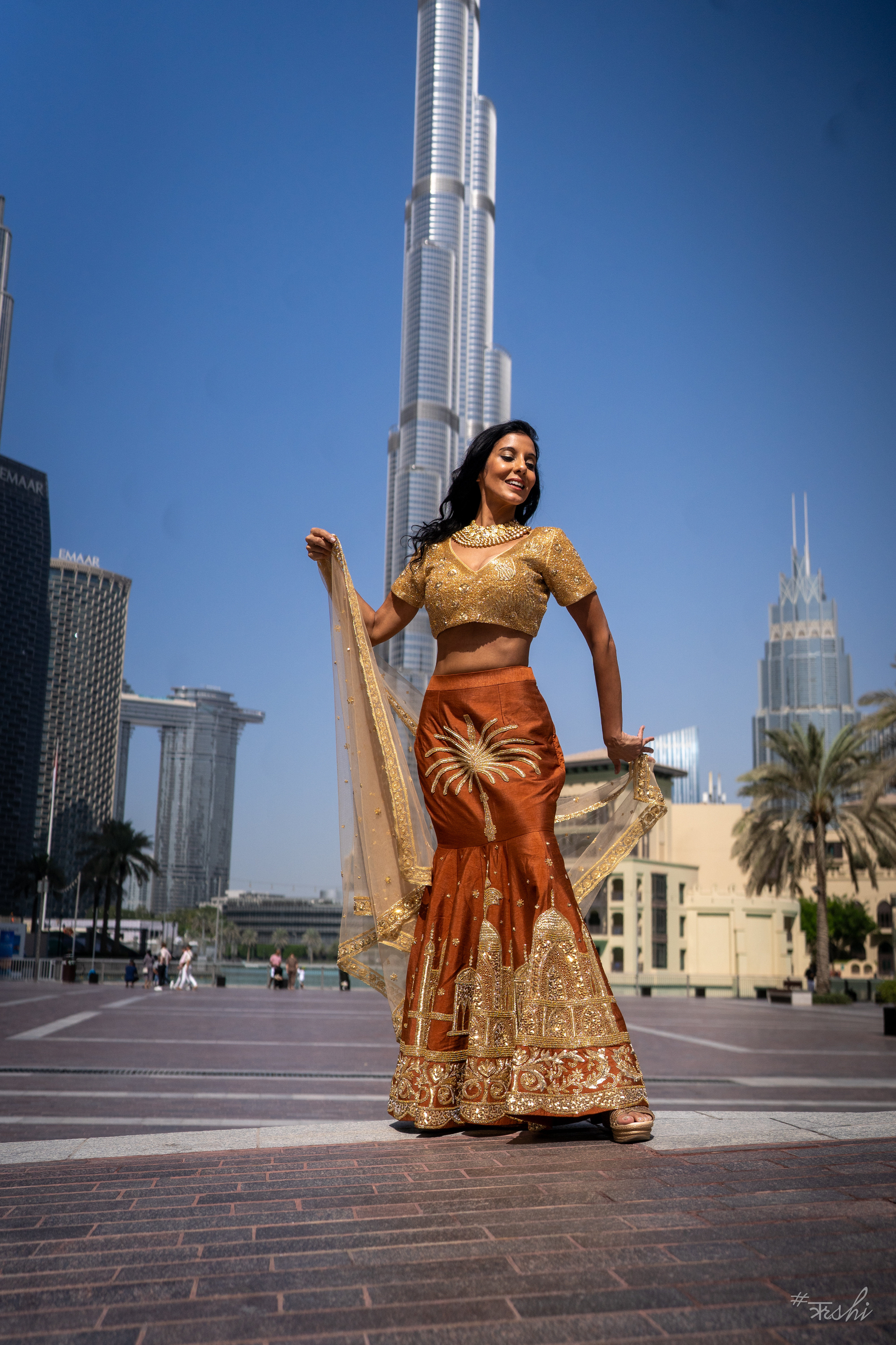 Her first major breakthrough came at Emirates Fashion Week – Dubai, where her Palm Island–inspired collection, created in collaboration with Arni Fashion LLC, wowed audiences with its intricate storytelling and couture finish.
